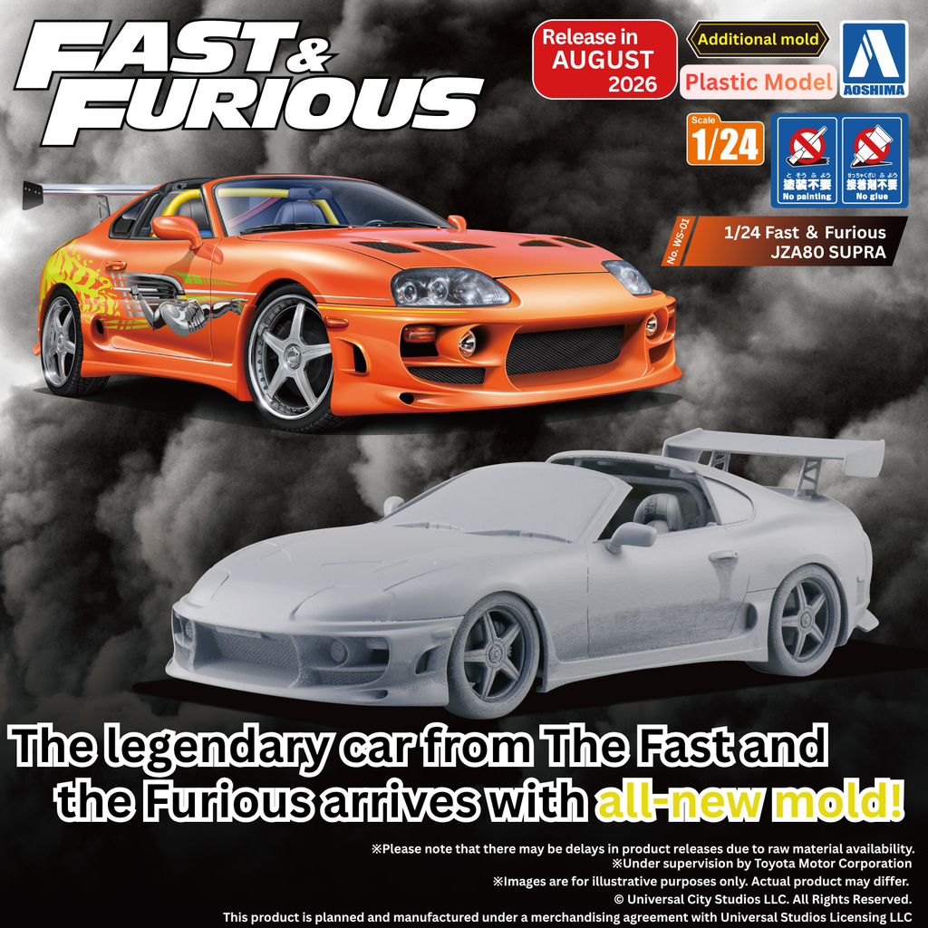This model kit recreates the JZA80 Supra driven by the main character Brian O’Conner in the 2001 car-action film The Fast and the Furious.