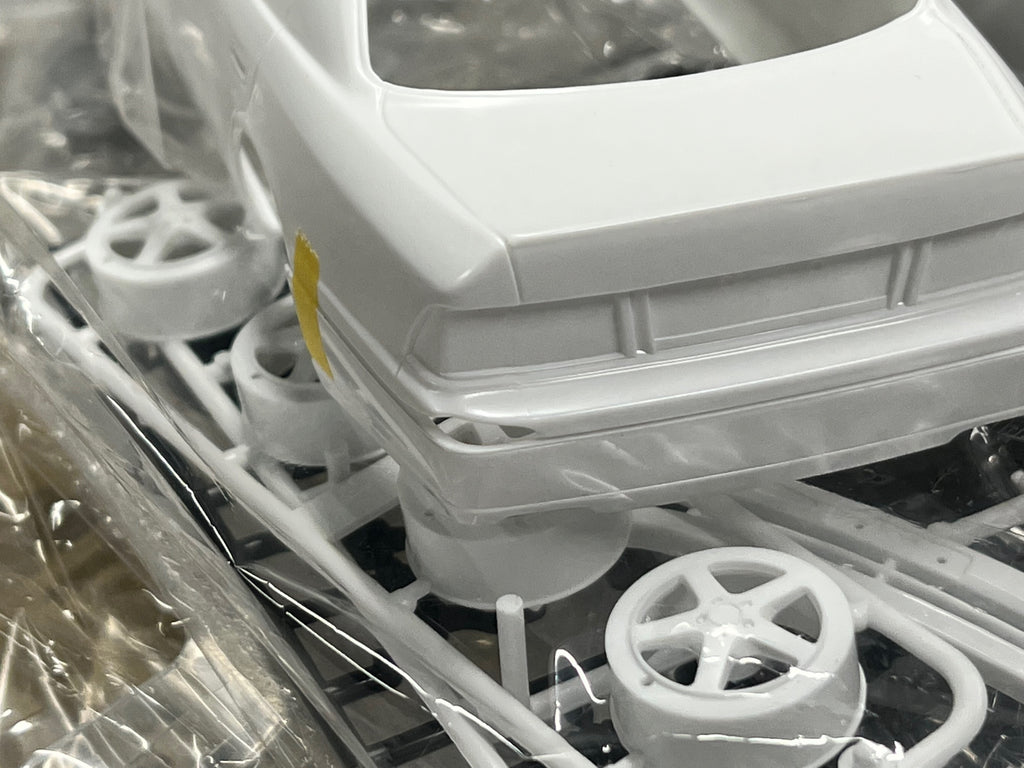 Review photos defect on rear body next bumper. Advance modeler to fill in. Kit is complete open box.